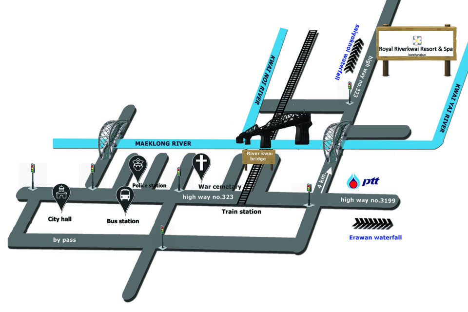 รอยัล ริเวอร์แคว รีสอร์ท แอนด์ สปา ตั้งอยู่ริมฝั่งแม่น้ำแควอันมีเสน่ห์เป็นที่รู้จักกันดีแห่งหนึ่งในจังหวัดกาญจนบุรี ที่พักอยู่ห่างจากตัวเมืองกาญจนบุรีเพียง 8 กิโลเมตร ขับรถประมาณ 10 นาที และใกล้สถานที่ท่องเที่ยวยอดนิยมหลายแห่ง อาทิ สะพานข้ามแม่น้ำแคว สุสานทหารสัมพันธมิตร ถนนคนเดินปากแพรก วัดถ้ำพุหว้า ปราสาทเมืองสิงห์ เมืองมัลลิกา เป็นต้น